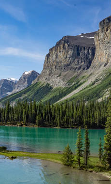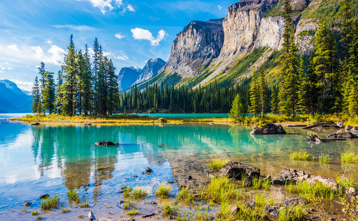 One of Alberta’s biggest attractions, Icefields Parkway connects the mountain towns of Banff and Jasper, winding alongside Athabasca glacier for 233 kilometers – experience epic views of the Columbia Icefield, cascading waterfalls and rugged mountains. Alternatively, stop and explore walking trails to Herbert Lake, Crowfoot Glacier and Helen Lake. Mistaya Canyon is just five minutes from the roadside with views of the thundering gorge, rocky hillsides and lush vegetation.