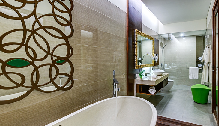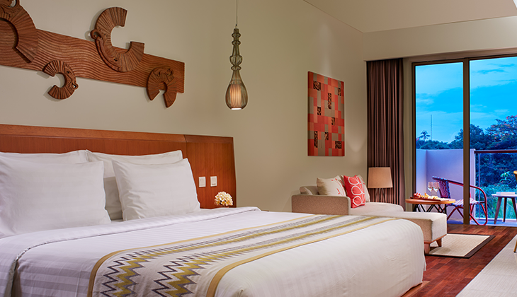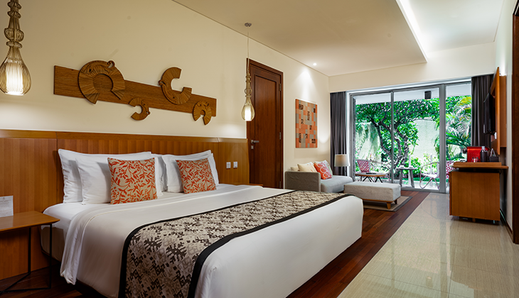 In this world of bright sun, white sand and blue water, Merusaka Nusa Dua sits right on the renowned Nusa Dua Beach – also known as Pantai Mengiat Beach – a calm, usually uncrowned strip with a 500-metre-long reef barrier offering protection. Pockets of coastline are even suitable for snorkeling, while local operators offer fishing trips and sightseeing in glass-bottomed boats.