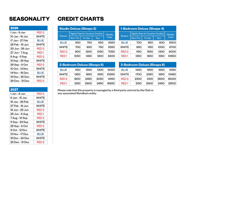 Lifestyle Benefits: Please note this property is a contracted resort and is not managed by Wyndham. As such, Privileges benefits do not apply.