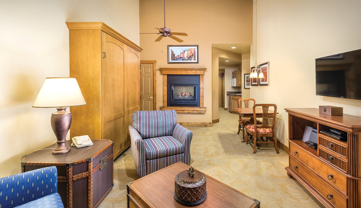 You’ll have the chance to reconnect with one another, free of distractions, amid the rustic stone accents of your hilltop resort. Golden seas of cornfields and dairy cows dotting the hillsides complement this downhome atmosphere. Pumpkin-picking and corn-maze cruising make for unforgettable scrapbook memories, while the historic Main Street warmly welcomes you to its wine bars, fudge shops, and charming antique stores.