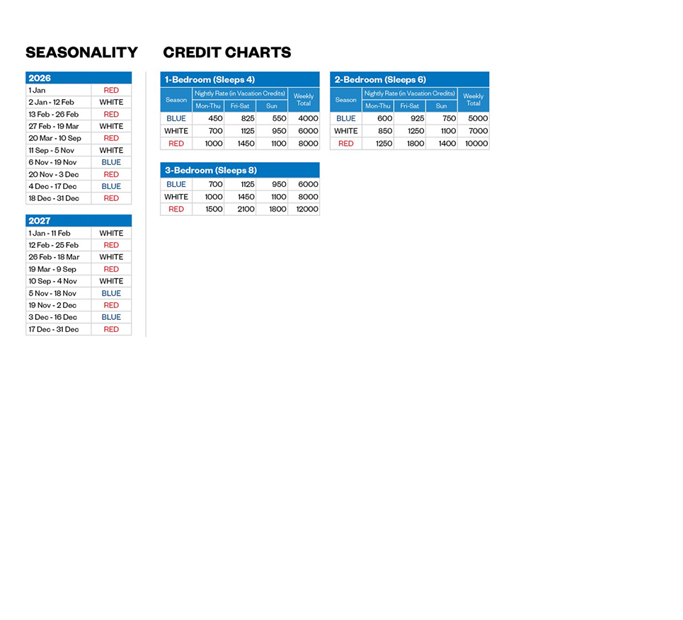 - Ground floor justification requests are accepted based on physical or medical needs. Please call the Vacation Planning Center for details.