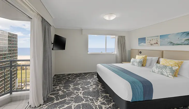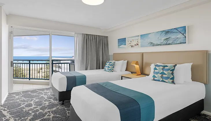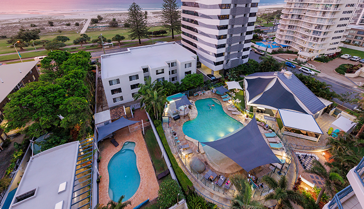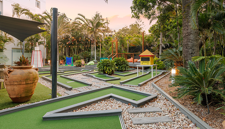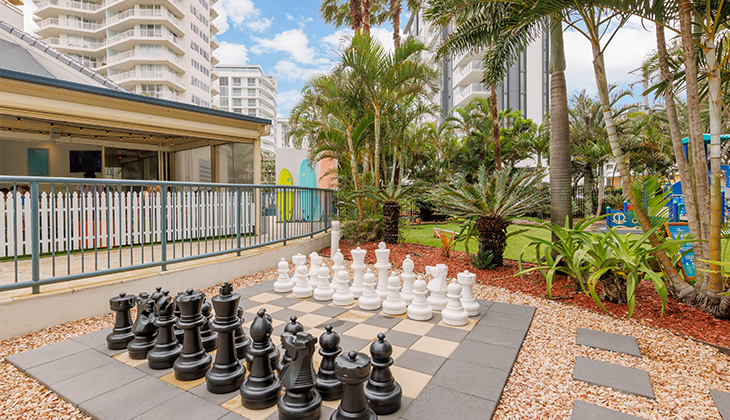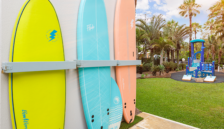 Embrace the Gold Coast’s quieter holiday vibe at this resort, on the family-friendly southern end of the Glitter Strip. Facilities include a heated pool, mini golf, bike hire, playground and there is a seasonal kids’ club.