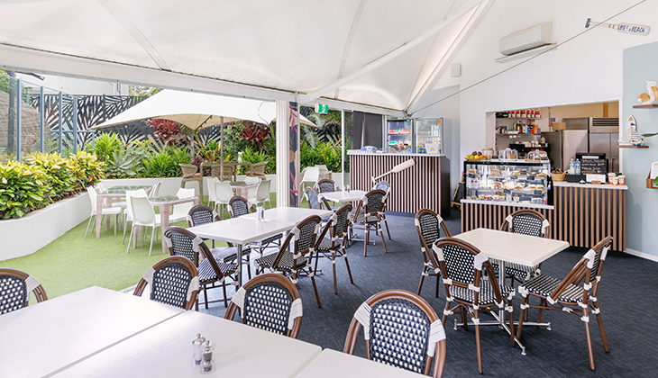 On-Site Cafe Now Open: Kahuna our on-site cafe and bar has a selection of meals, snacks and drinks, open from 7am daily and closing Monday at 3pm, Tuesday – Saturday at 6.30pm and Sunday 1.30pm. Dine in or take away. Take a look at the delicious options in our Restaurant section below.