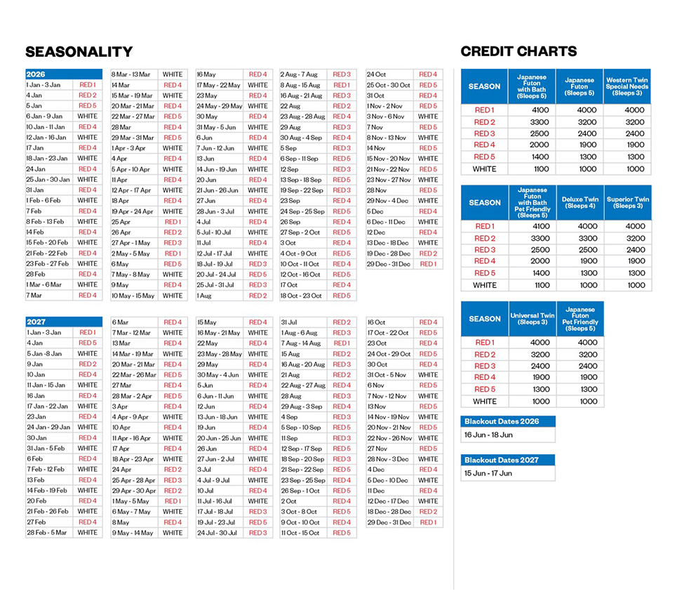 Click here to instantly calculate the credits required for your holiday