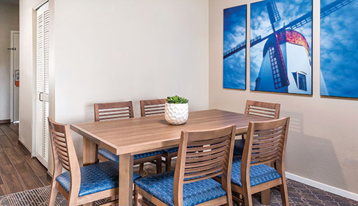 Old World Charm, Modern American Comforts. In the breathtaking Santa Ynez Valley of California lies the Danish-inspired village of Solvang, also known as Little Denmark. Here you’ll find cobblestone streets featuring Old World architecture highlighted by gingerbread trimming and thatched roofs, and a wonderland of windmills, flower baskets and flying pennants. WorldMark Solvang puts you in the heart of the picturesque little village. Just outside your door you’ll discover the bustling downtown shopping district filled with European wares, antiques and aromatic bakeries. There are also several wine-tasting rooms in town, and more to explore in scenic Santa Barbara County wine country.