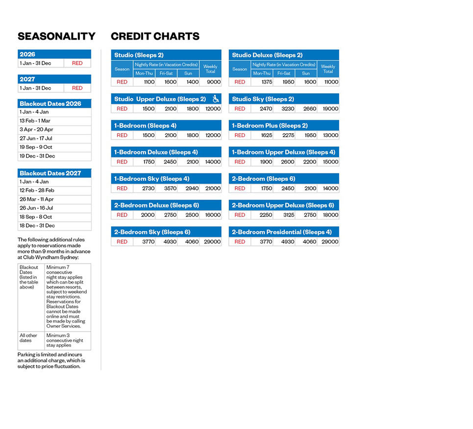 Car Parking: There is limited secure valet parking available at this property at a cost of AU$45.00 (AUD) per night (effective from 1 March 2025) and is suitable for smaller vehicles only. AU$35 offsite unlimited availability. Parking cannot be reserved in advance and is based on a first in first served basis. The basement car park has a height restriction of 2.1 metres so may not be suitable for larger vehicles. Platinum/100 Club Owners are eligible for 1 complimentary car space per ownership.