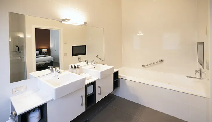 Studio Special Needs: The Studio Special Needs units have a pull down wooden slat seat that is attached to the wall in the shower (as this is fixed to the wall, cannot be moved at all).