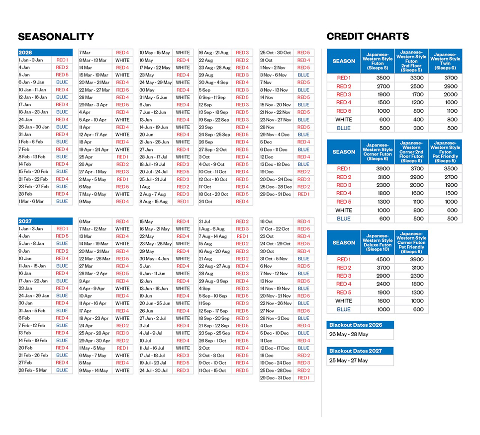 **JAPAN ON REQUEST ROOMS:  All confirmed bookings for “Request Only Rooms” will not appear on the online account history. Please contact Owner Services if booking needs to be cancelled or amended.**